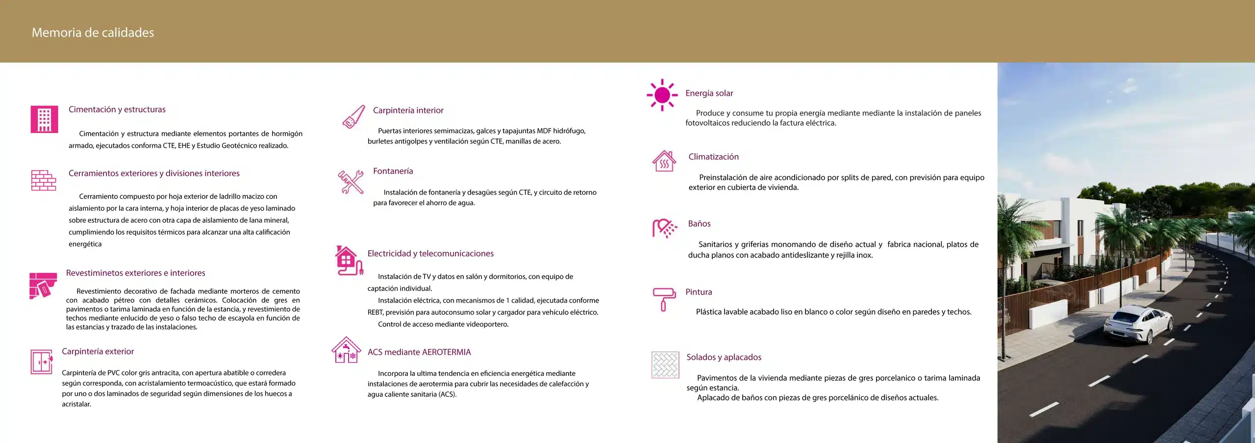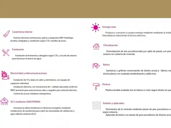 – Las viviendas cuentan con preinstalación de instalaciones fotovoltaica